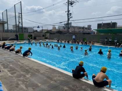 3・4年生の水泳の時間です。今日は水泳日和です。