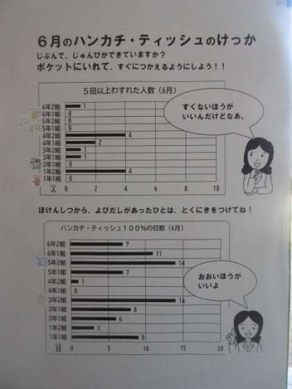 玄関に6月のハンカチティッシュチェックの結果を掲示しています。
