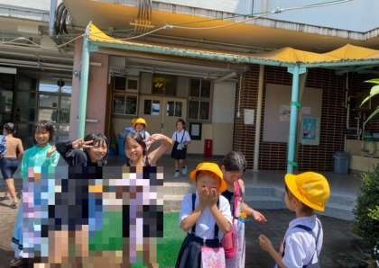 今日は、最高気温が30度を超す「真夏日」の予想、ミストシャワーが全開です。