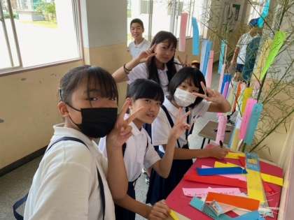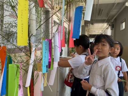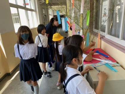 今日も休み時間になると、各学年の子どもたちが、短冊に「願いごと」を書きにきていました。