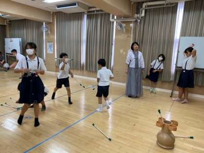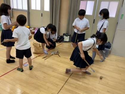 子どもたちが、「トゥホ・ペンイ・チェキチャギ」といった韓国の伝統玩具を使った遊びを楽しみました。