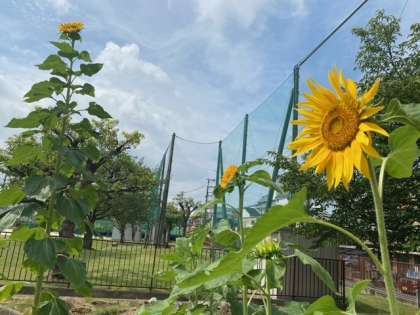 学習園で、「ひまわり(向日葵)」が大輪の花を咲かせています。