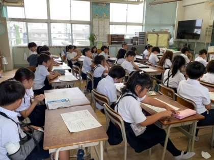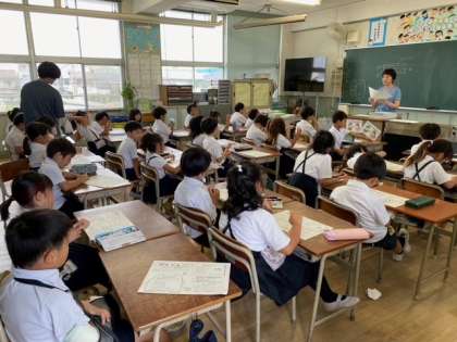 学年だよりで、夏休みの宿題の確認や、「きそく正しい生活を送る」「家のお手伝いをする」などの夏休みの過ごし方について、担任の先生から話を聞いていました。