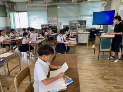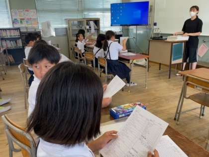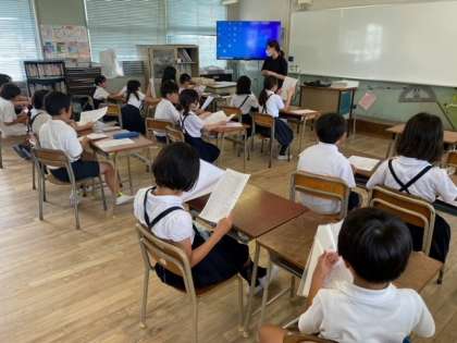 2組でも、子どもたちが先生から「通知表」をもらっていました。