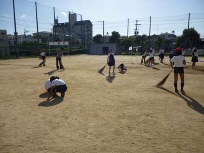 PTAの皆さんや、5.6年生が、運動会の準備で運動場や正門、トイレ等きれいに掃除をしました。