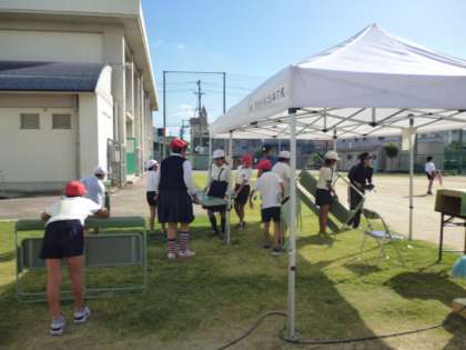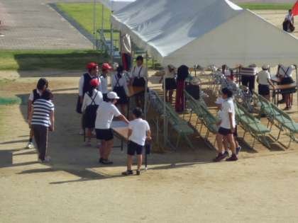 前日は雨でしたが、今日は晴れ、1年から6年まで運動場で最後の練習をすることができました。6時限目は、5・6年生が残って運動会の準備をしました。PTAの皆さんも午後2時に学校に集合し、準備をしていただきました。お忙しい中、誠にありがとうございました。