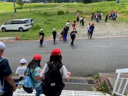 避難訓練を終え、これから高丸山へ登山に向かいます。