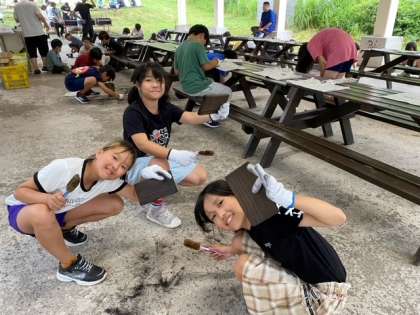 みんな一生懸命に板を磨きます。