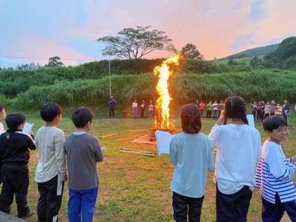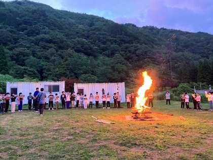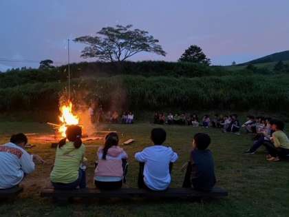 炎を囲み、キャンプファイヤー係の進行ですすんでいきます。