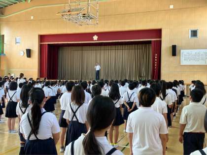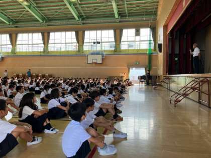 「今日、皆さんの元気な顔を見るのをとても楽しみにしていました。夏休みは普段できない体験をして楽しく過ごし、いい思い出ができたことと思います。