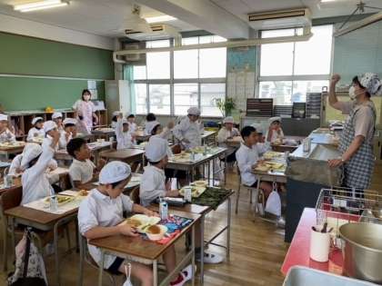 学級の仲間と一緒に食べる給食の時間はやっぱりいいものです。子どもたちも楽しそうです。