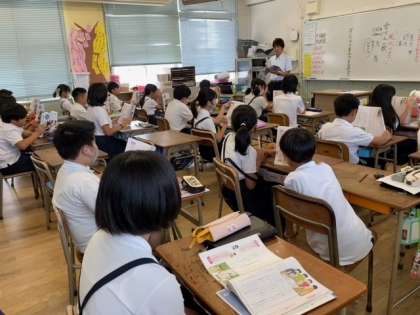 1組の道徳科は、「ぼくたちの夏休み自由研究」の資料を使って「自由と責任」について考えました。