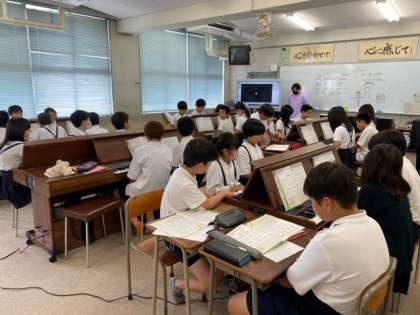 「静かにねむれ」の曲を、和音の移り変わりを感じながら演奏しました。