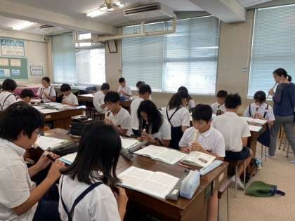 子どもたちが、リコーダーで「雨のうた」を練習しています。