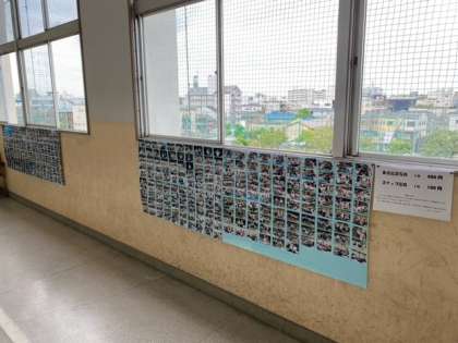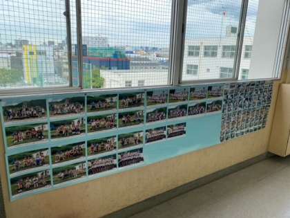 5年生の教室前廊下に、7月に行った「林間学習」の写真が貼ってあります。
