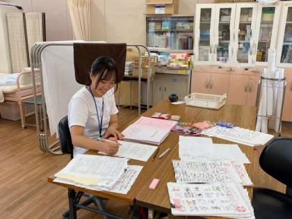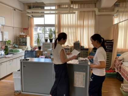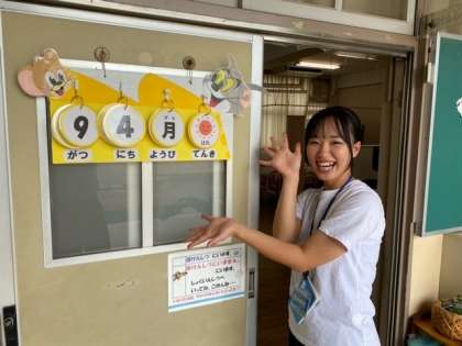 実習生が、可愛い日めくりカレンダーを作成し、保健室のドアにかけていました。