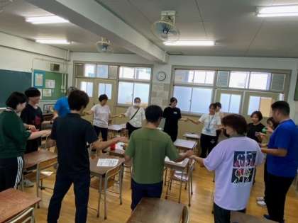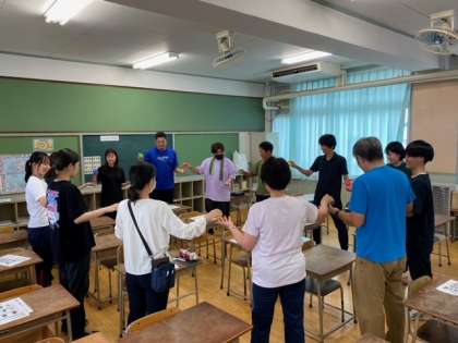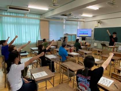 研修に参加した教員が講師として、脳を活性化させるエクササイズを行いました。