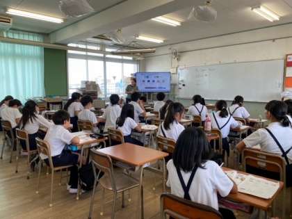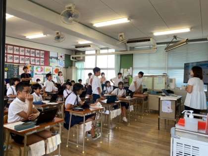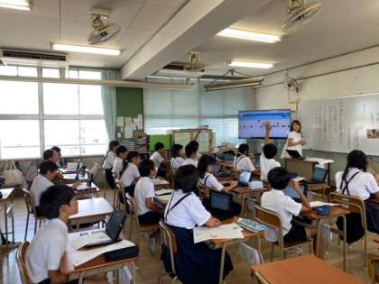 1組の外国語(英語)科は、My Summer Vacation 〜夏休みに行った場所とその時の感想を聞いて問題に答えていました。