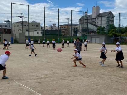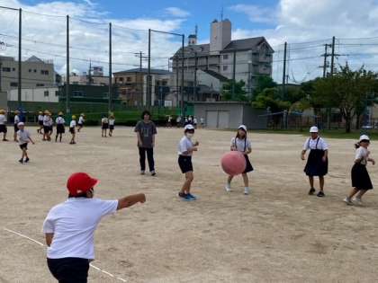 3・4年生の子どもたちが、ドッジボールをして遊んでいます。