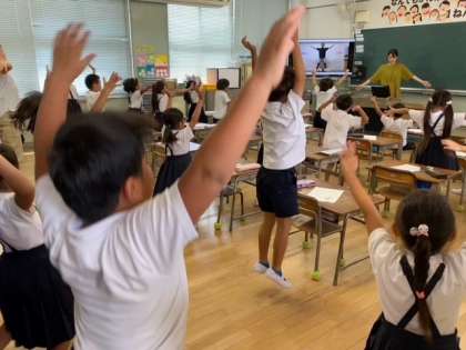 1組の教室では、みんなで運動会のダンスを練習していました。