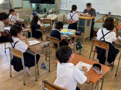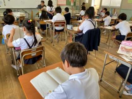 教科書に載っている「金子みすゞ」の詩「ふしぎ」を、子どもたちが暗唱していました。