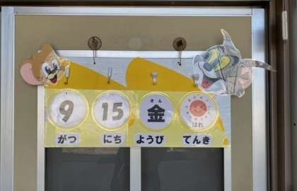 9月15日、金曜日、晴れです。(実習生作成の日めくりカレンダー)