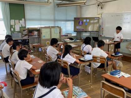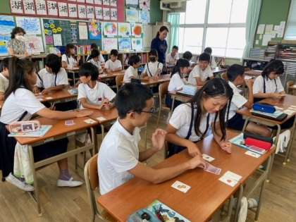 カードを使って、好きなもの、すること、持っているもの、ほしいものを二人一組で伝え合いました。