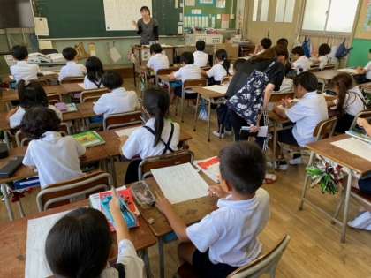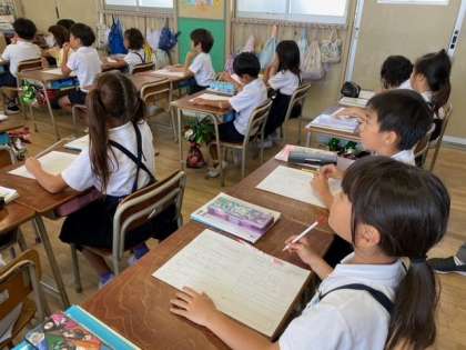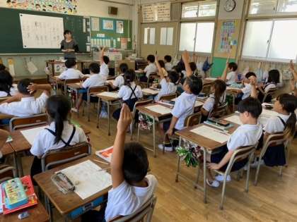 授業の終わりには、反対の意味をあらわす言葉を使って短文をつくり発表しました。