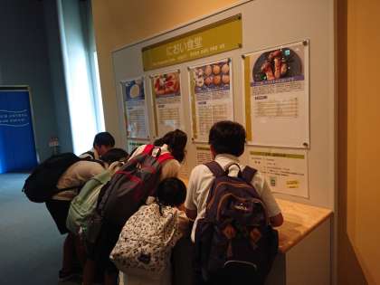 におい食堂で、緑茶・ピザ・たこ焼き・松茸のにおい比べです。