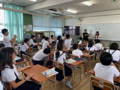 ワークシートでは、自分が好きなものなどの絵をかいてグループで伝えあいました。〜 I like ( ).