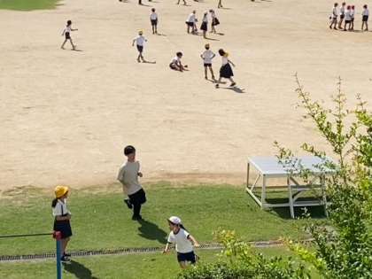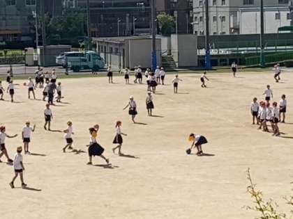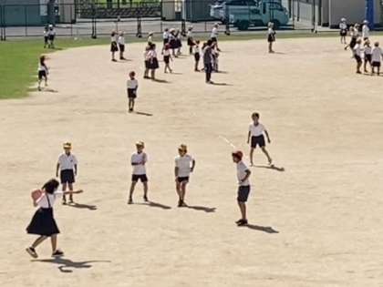 運動場では、子どもたちが友だちや先生とドッジボールなどをして遊んでいました。