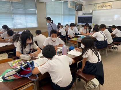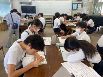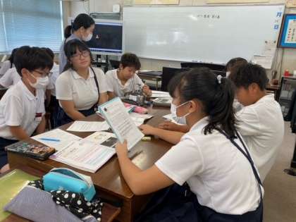 気づいたことや感じたことをワークシートに書き、グループで交流していました。