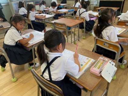 1組の国語科で「カタカナ」の練習をしています。