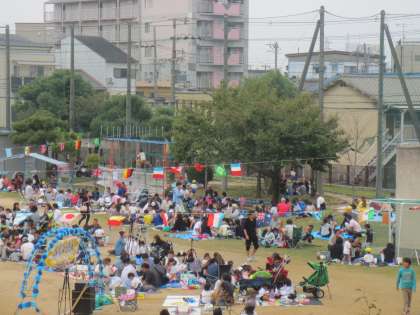 お昼は運動場いっぱいに、お弁当タイムを楽しんでおられました。