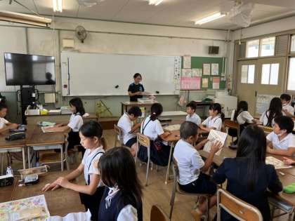 子どもたちが、おやつや飲み物に含まれるエネルギーについて学習しました。