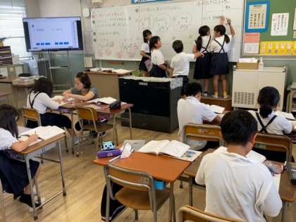 1組の算数科の学習では、3桁×1桁のかけ算を「ひっ算」で求めていました。