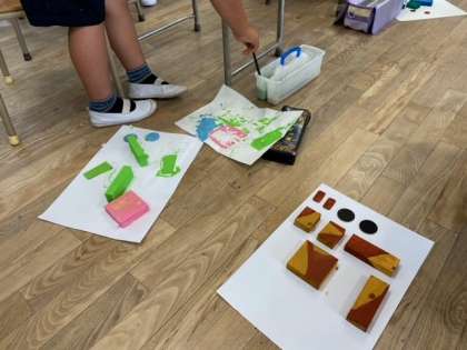 乾燥させた後、くぎを使って「動物やロボット」を組み立てていきます。