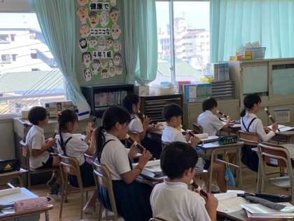 1組の音楽科では、「思い出のアルバム」をリコーダーで練習していました。