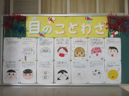 健康委員会で作った「目のことわざ」の掲示です。