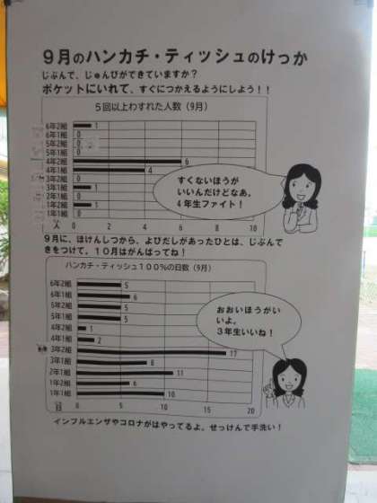玄関には、9月のハンカチティッシュの集計グラフ