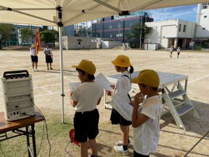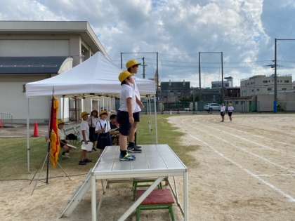放課後、運動会の「開会式」を担当する児童が練習をしていました。