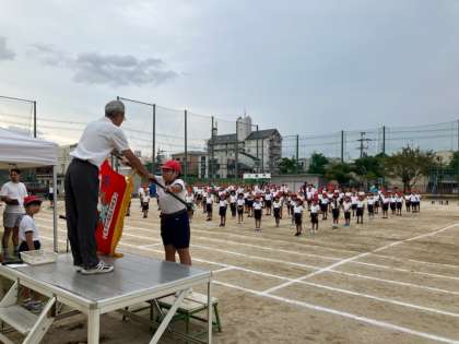 「(昨年度)優勝旗・準優勝盾返還」のようすです。