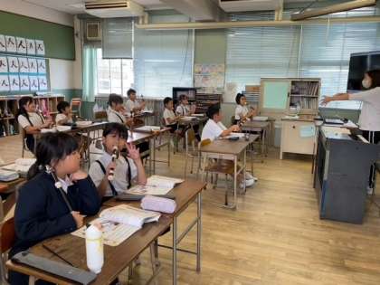 2組の音楽科は、「坂道」や「雨上り」の曲を、タンギングと息の強さに気をつけながら リコーダーでふいていました。
