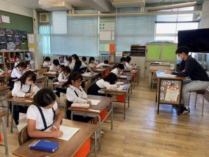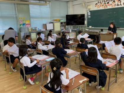 「タブレットを使う時のIDやパスワードは人に教えてはいけないことを知っている」といった情報セキュリティから、タブレットの基本操作について、先生の説明を聞き、子どもたちがいくつかの項目に答えていました。