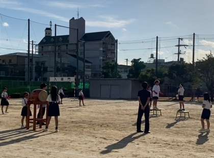 団員が、紅白の はちまき・手袋を身につけ、いちだんと盛り上がってきました。