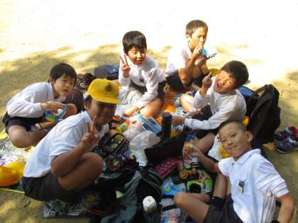その後は、お楽しみのお弁当。「おいしい〜。」