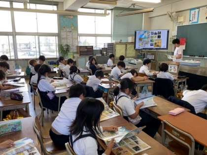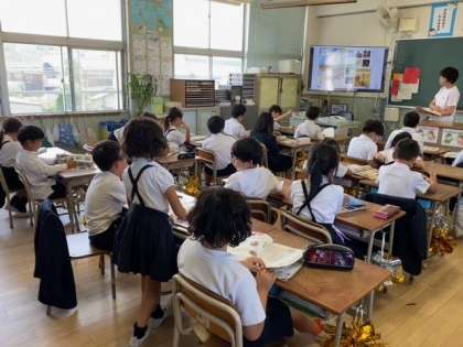 生活科の学習で、「秋のくらし」と「夏のくらし」のイラストを比較して、気がついたことを発表しています。