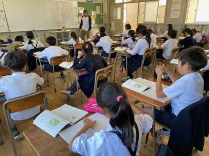 「文の組み立てと修飾語」について、例文をもとに考えていました。