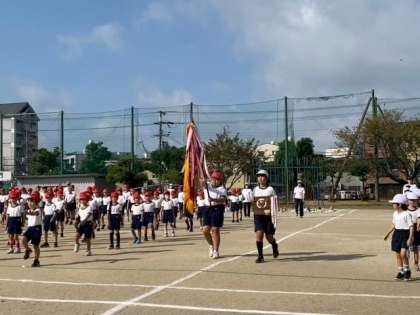 優勝旗・準優勝盾を先頭に入場行進です。