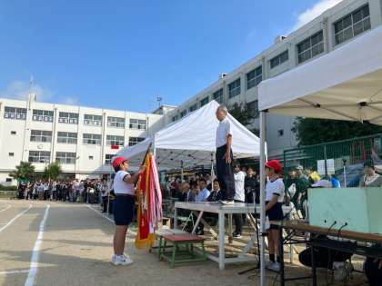開会の言葉・国旗掲揚に続き、昨年度の優勝旗・準優勝盾が返還されました。